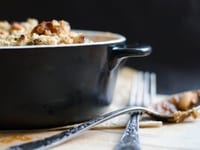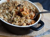 Versez les haricots dans un plat allant au four, saupoudrez de chapelure, parsemez de beurre et enfournez à 200° pendant 10 minutes.