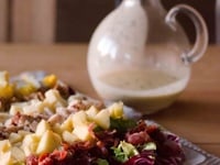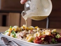 Servez la salade assaisonnée de vinaigrette.